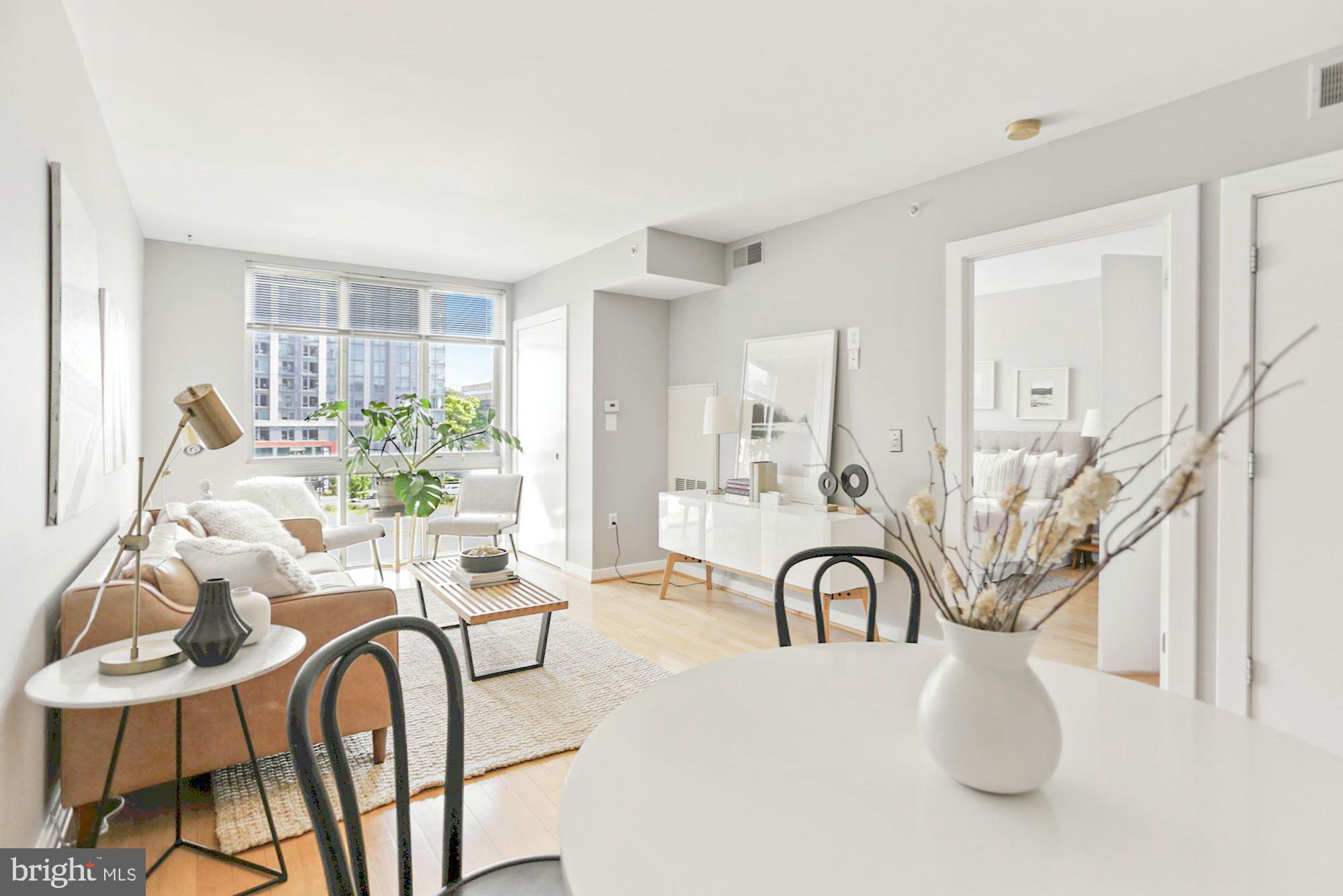 Sunny and spacious one bedroom in the heart of Nats Park! This gorgeous 1 bedroom condo was recently completely painted, including new white cabinets and all appliances are just 3 years young. Hardwood floors, plenty of space for a dining room table along with living room area complete this open concept living space. Full size W/D in unit and HUGE walk in close and ensuite bath to bedroom. As far as location and amenities, Capitol Hill Tower can't be beat. Just minutes to Nats Park, Navy Yard Metro, Trader Joe's Whole Foods and Harris Teeter. Also, a few blocks away to Barracks Row or catch a soccer game at Audi Field. Work on the hill? No problem-just minutes to work. Building amenities include 24 hour front desk, package drop off, indoor pool, gym, and party room